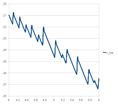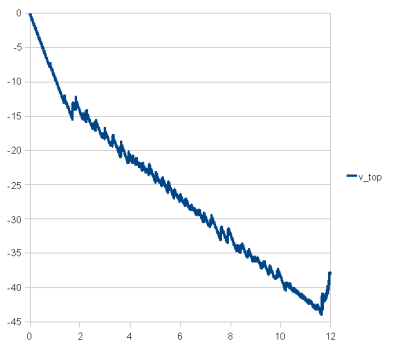 Next, some graphs to get an idea of the dynamics for this simulation. Position of the very top over time: