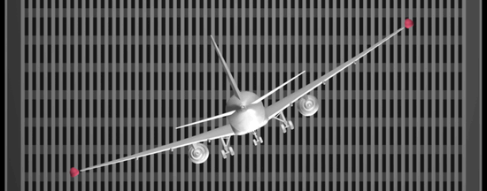 Since columns are spaced 4 foot on center, notice that the wing tip placement is perfectly symmetrical. It is better than 1 meter precision in relation to the exact center of the building.
