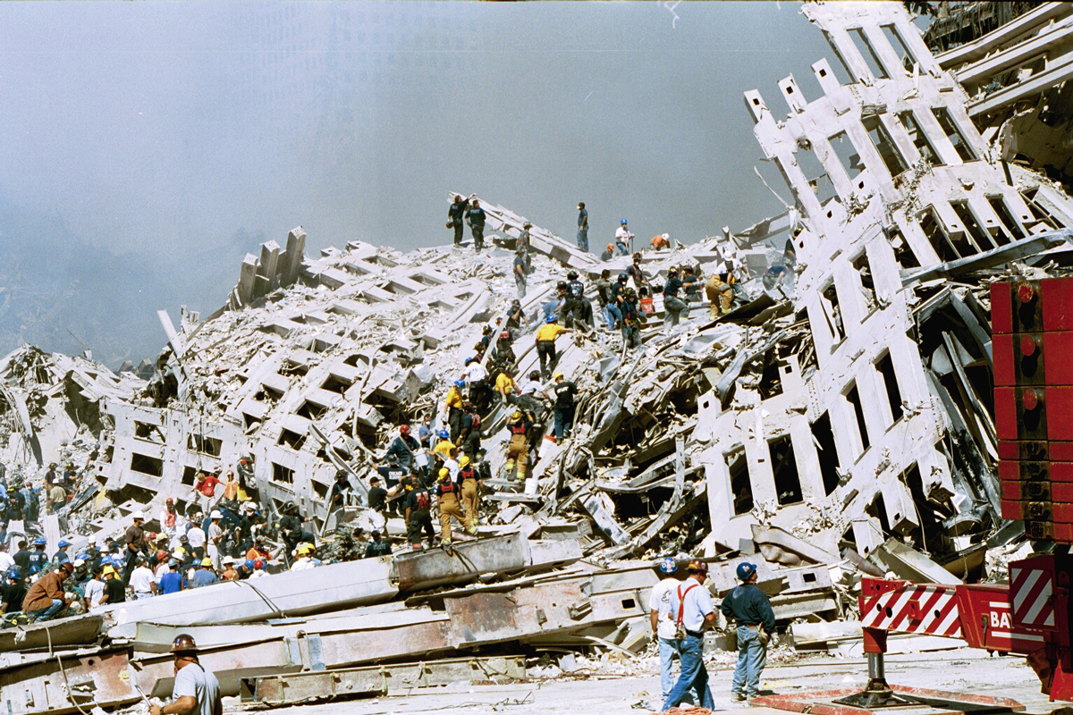 Clean-up operations have already cleared debris in the lower left corner of the photo but the size of the intact east side of the building is obvious.
