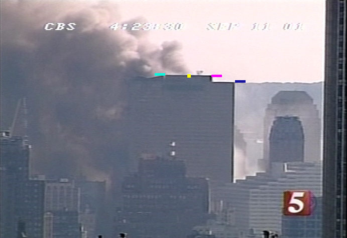 One can see both core (screen wall) and northwest corner movement relative to a free fall trajectory.