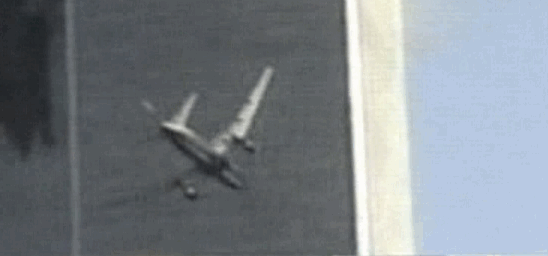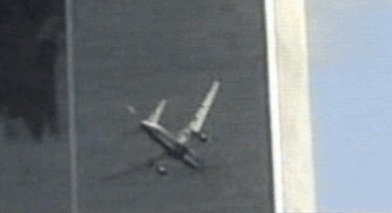penetration point and the starboard wing-tip penetrating the façade at the