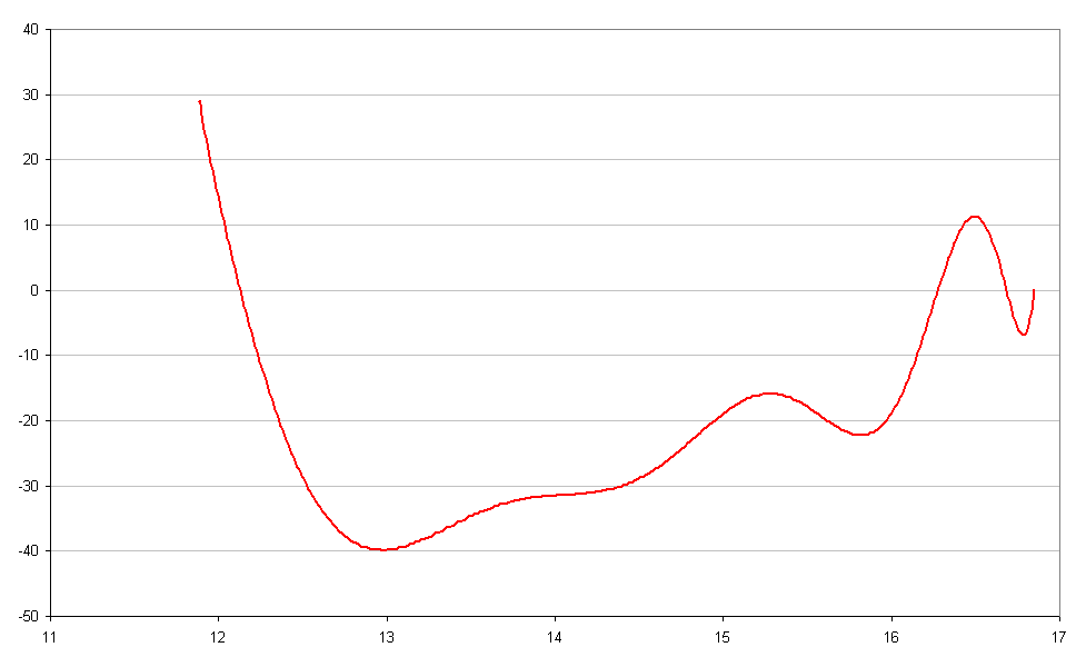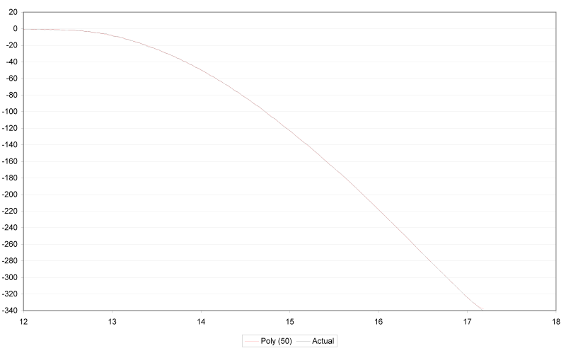 I said it's a very loose curve (though it's not *that* far off - have you plotted the equation itself ?), and the graph is probably useless (as it's very low order due to max-ing out on the poxy excel poly fit. Am looking at a order 56 plot at the moment, but there's no rush).