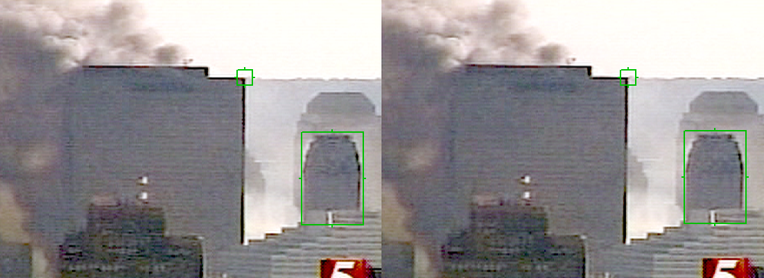 I think it's been made clear that SynthEyes is more than capable of sub-pixel positional accuracy, and the variance in traces of WTC7 is low. There are all manner of sources of noise which could result in the trace position varying, but they are nothing to do with SynthEyes. It simply determines the location which best matches its reference image. An example of what I'm talking about there is the draft NE corner trace. That showed the NE corner gradually descending over a long period. In reality the corner didn't move, but the *bleed* of the image data reduced. As SynthEyes was told to track that location, it did exactly what it said on the tin. Changing the trace location to the windows near the NE corner negated that particular video artifact.
