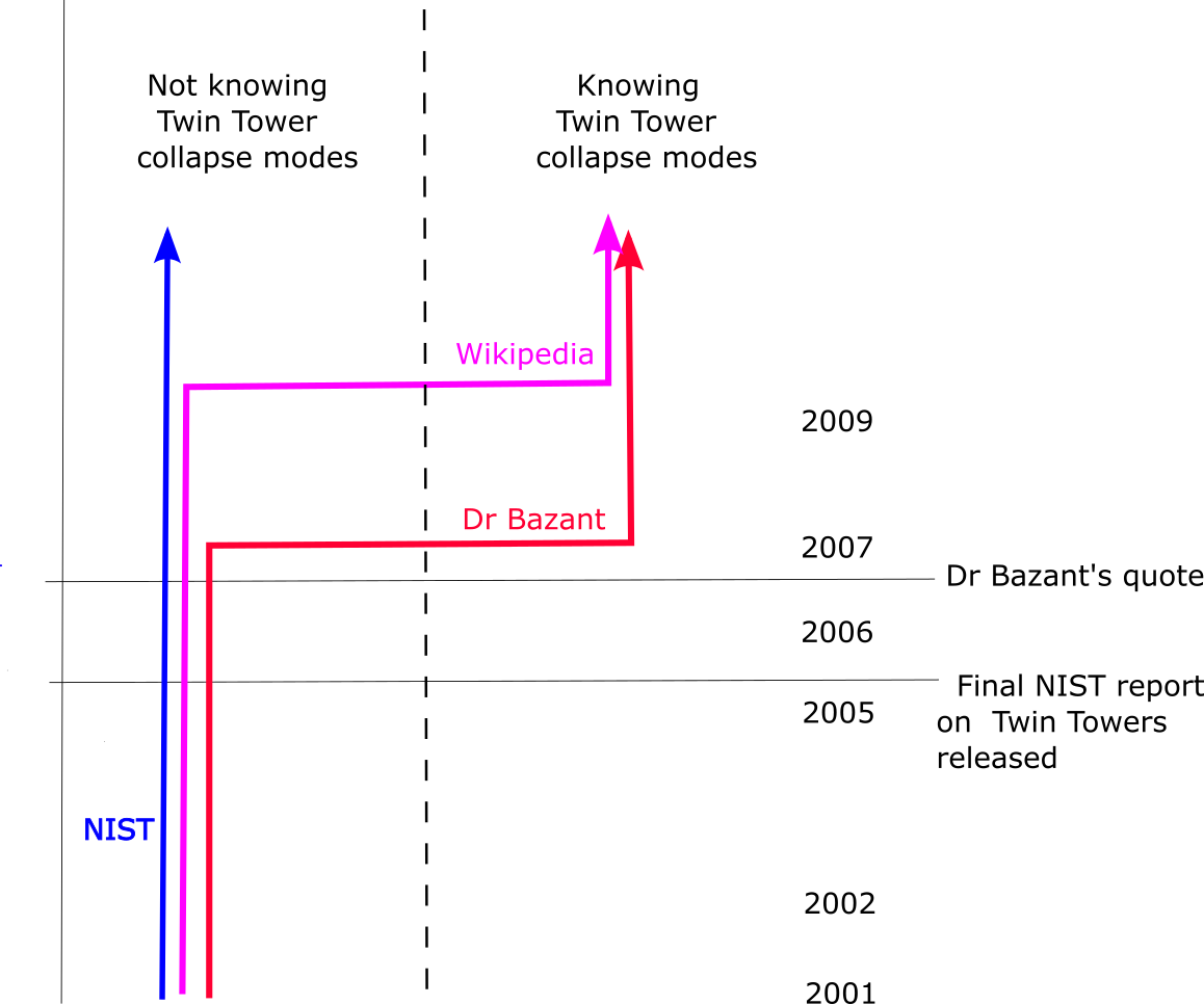 NIST decided to avoid the Twin Towers collapse modes completely around 2003. The only reason that was ever given is because a small simple paper by Dr Bazant in 2001 made it unnecessary. The same NIST goes into absolute silence about the collapse progression modes since 2002. Then, coincidentally, the same Dr Bazant, during complete silence from the NIST, discovers the first detailed, explicit collapse progression modes in 2007 that he and the NIST were silent over until then.