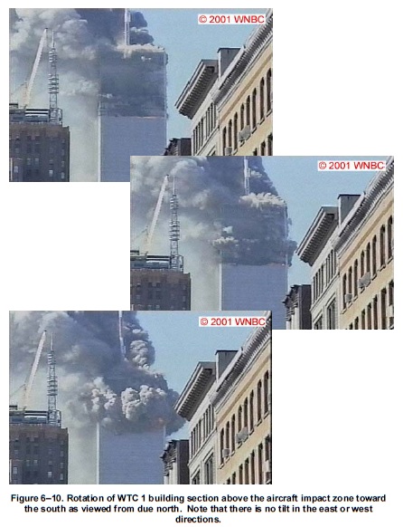 "Rotation of the building section above the impact and fire zone to at least 8 degrees to the south occurred before the building section began to fall vertically."
