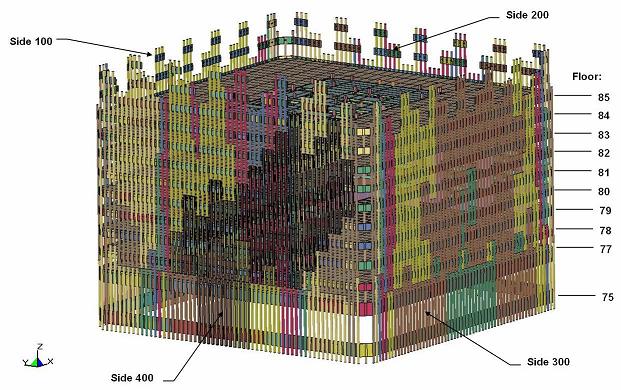 This mathematical 1-D interaction described in the latter Bazant papers has come to be taken quite literally as the process that actually happened to each tower. Block mechanics is now an integral part of the technical historic record of the collapses. As a result there is no accurate portrayal of the true collapse progression mode within any academic or government literature. A literal interpretation of the blocks described by Bazant serves as the current description of how the buildings collapsed within recorded technical history.